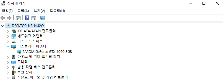 제 PC에 장착된 그래픽 카드는 'NVIDIA GeForce GTX 1060 3GB' 입니다. CPU와 마찬가지로 부분 단위인 코어의 처리 속도와 코어의 수가 그래픽 카드의 성능을 좌우합니다. 추가로 그래픽 카드는 처리 장치와 별도의 그래픽 메모리를 포함합니다. 처리 속도가 빠를 수록, 코어의 수가 많을 수록, 그리고 메모리가 많을 수록 고사양의 그래픽 카드라고 보시면 됩니다.