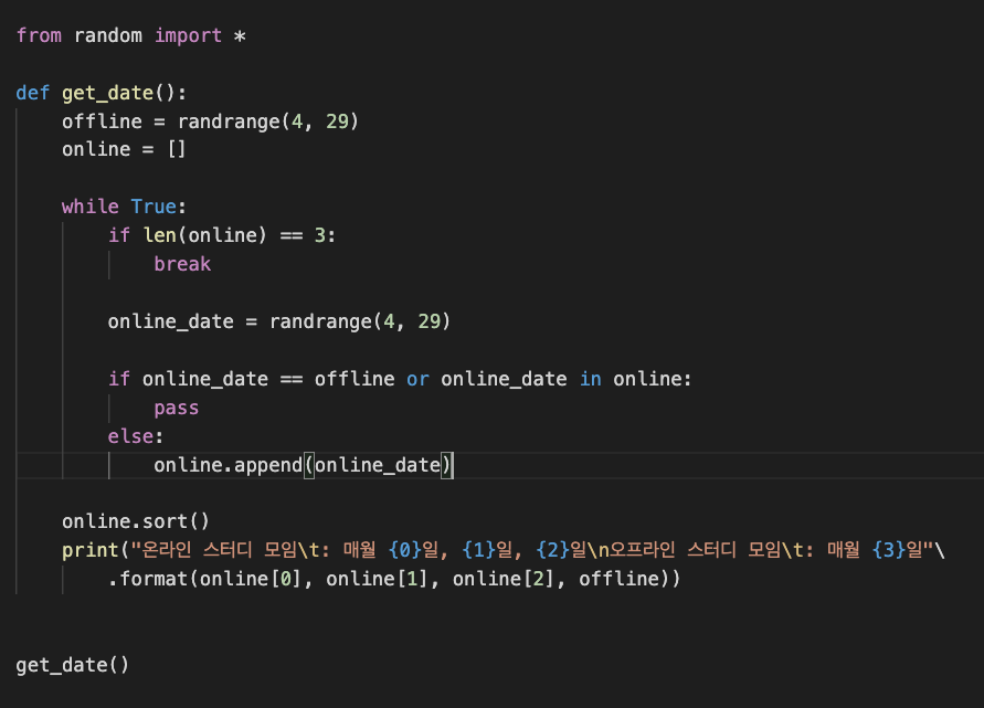 # 뽑힌 무작위 날짜가 순서대로 표시되도록 리스트의 <sort()> 함수를 이용했습니다.