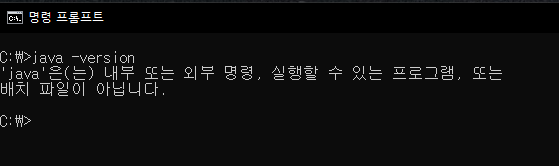 Java를 정상적으로 설치한 후에도 명령 프롬프트에서 Java의 버전을 확인하는 명령어를 입력해도 위의 이미지와 같은 오류가 발생한다.