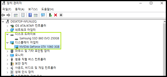 추가로 Windows의 장치 관리자를 통해 저장 장치의 종류와 그래픽 카드 사양을 확인할 수 있다. 첫 번째 이미지의 왼쪽에 [장치 관리자]를 클릭하거나, 시작 버튼을 우클릭해도 접근이 가능하다. 그래픽 카드를 우클릭 하여 [속성] 창에 들어가면, 현재 설치된 그래픽 드라이버의 최신 여부도 알 수 있으니 참고하자!